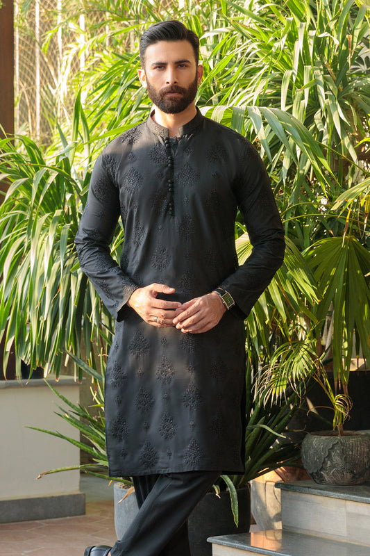• Men’s Midnight Charcoal Short Kurta & Wide-Leg Pajama