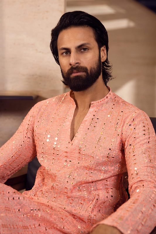 • Mint Mughal Motif Embroidered Kurta Pajama