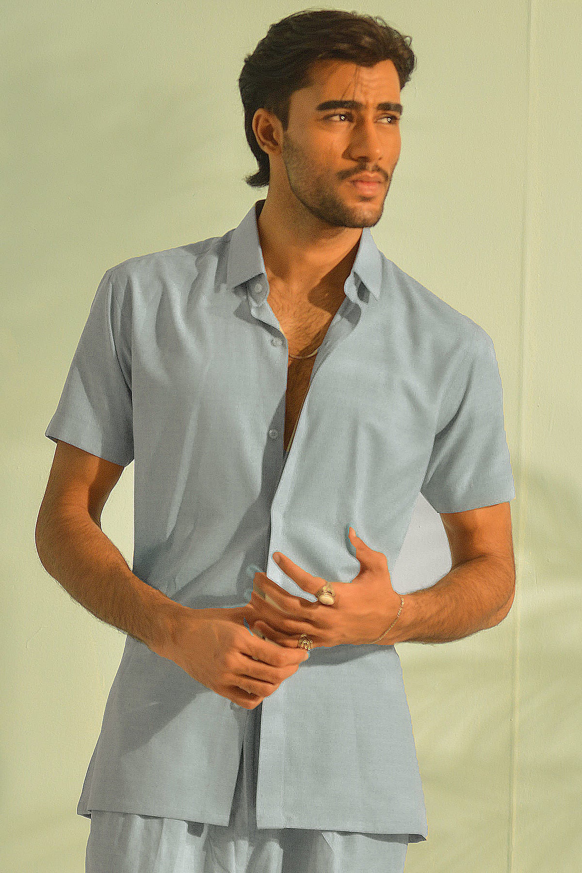 Elevate your summer style with the Azure Breeze Co-ord Set. Crafted from lightweight, breathable fabric, this set features a relaxed short-sleeve shirt paired with matching tailored shorts for a sophisticated yet effortless look. Designed in a calming pastel blue shade, it’s perfect for beachside strolls, casual gatherings, or resort getaways. Subtle detailing like the open collar and flowy silhouette add modern charm, while its versatile design lets you wear the pieces together or mix and match with your wardrobe staples.